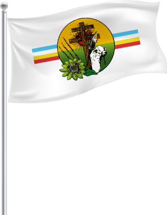 Fondo blanco: Símbolo de lo noble y lo puro. Colores transversales: Celeste y blanco, amarillo y rojo, enlazando las banderas argentina y española. Cruz de doble brazo, distintivo de los padres jesuitas, fundadores del pueblo. Flor de Mburucuyá: Representa la pasión de Cristo y es distintivo de la flora autóctona de nuestra región guaranítica. Animal vacuno: Ganadería. Panoja de arroz: Agricultura. Tres lanzas indias: Defensa del terruño por Andresito. Lenguas de fuego: Detrás de la cruz, representan las destrucciones que sufriera el pueblo. Círculo dividido en dos colores: verde, color de los pastizales y oro, esplendor del sol. Creador: Mario Leónidas Merlo
